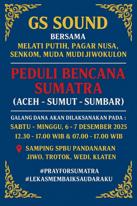 Solidaritas yang mengalir dari Jiwo Kulon, Klaten menuju Sumatra adalah bukti bahwa gotong royong bukan hanya cerita lama—ia adalah kekuatan yang membuat bangsa ini tetap berdiri di atas setiap tragedi.
