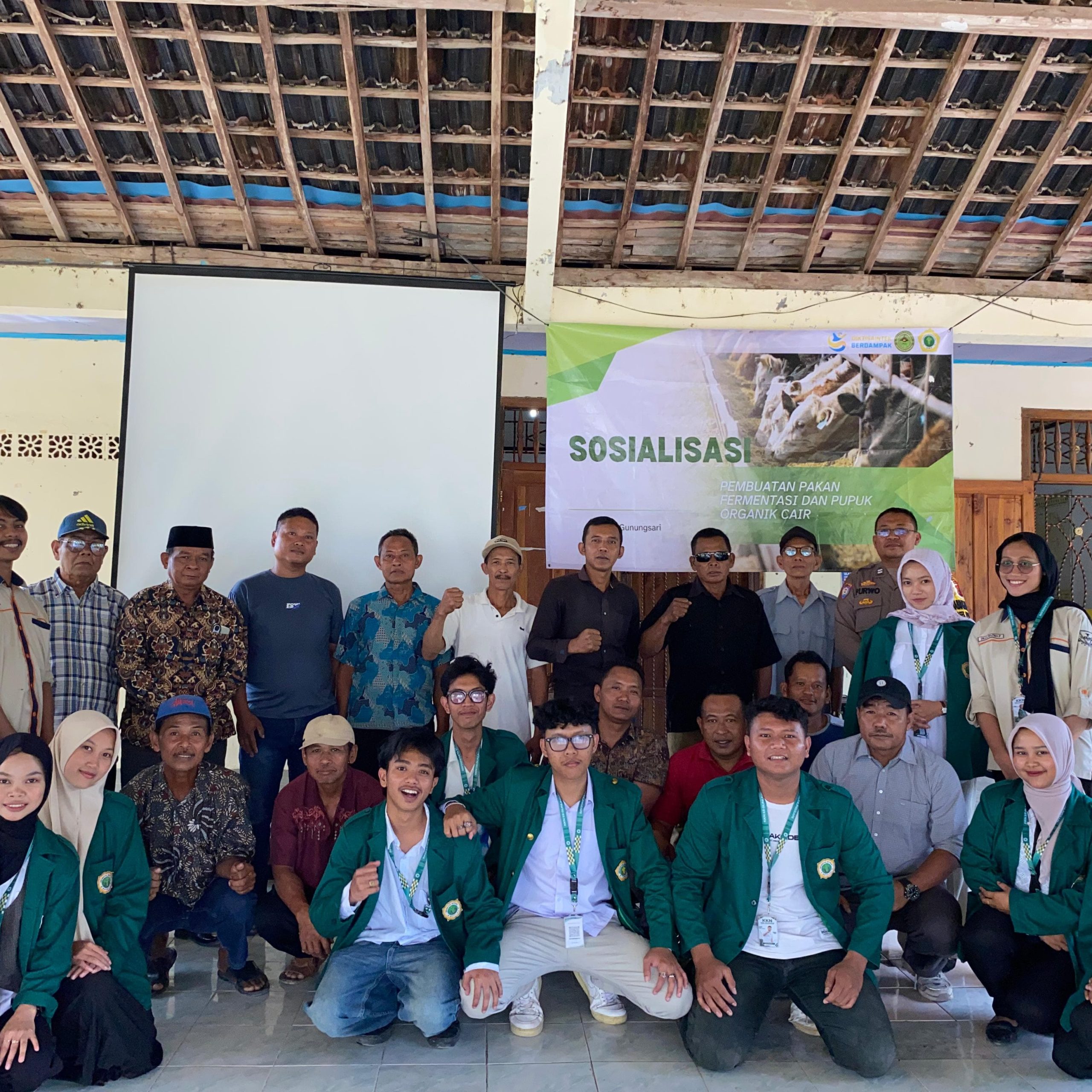Sesi pengabdian KKN pada kali ini mengambil tema “Pemanfaatan Limbah Organik Lokal untuk Ketahanan Peternakan dan Pertanian Desa”. Dalam kegiatan ini para mahasiswa memperkenalkan teknologi tepat guna berupa fermentasi pakan ternak berbahan dasar limbah kulit jagung, serta pupuk cair alami yang dibuat dari urin sapi. Event yang dirancang oleh mahasiswa peserta KKN ini disambut baik dan antusias dari warga Desa Gunungsari, mulai dari perangkat desa, ketua RT/RW, BPD hingga kelompok tani dan peternak setempat.